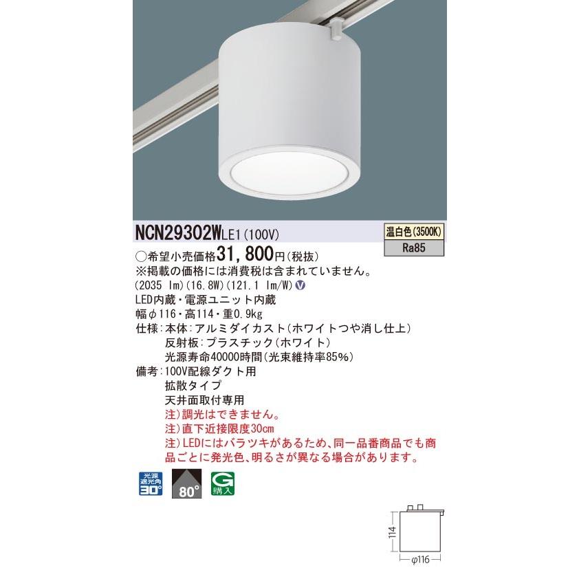 【法人様限定商品】パナソニック NCN29302WLE1 LED小型シーリングライト 天井直付型・配線ダクト取付型 ビーム角80度・拡散 温白色
