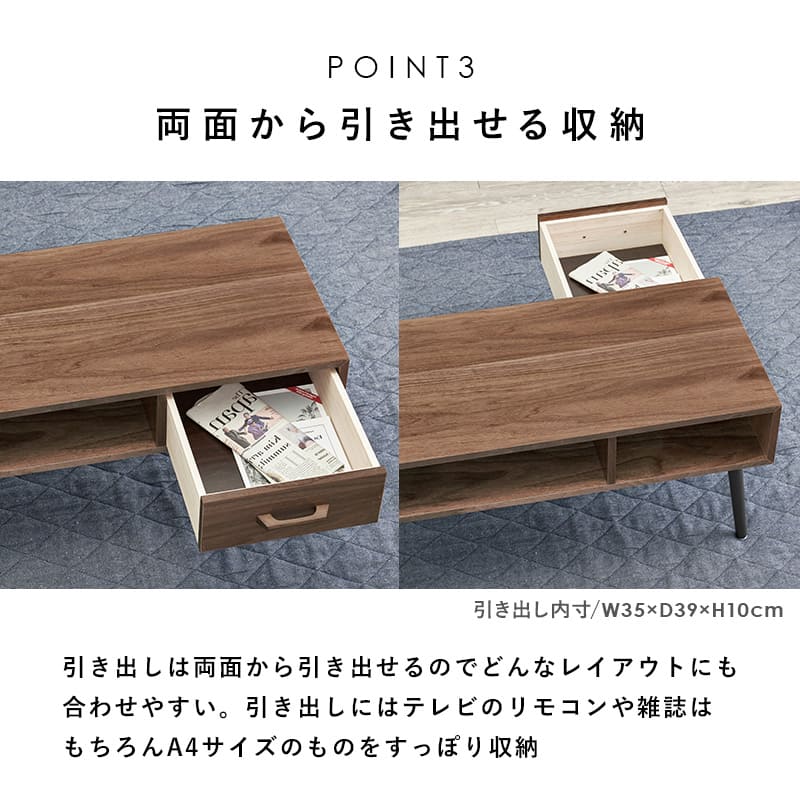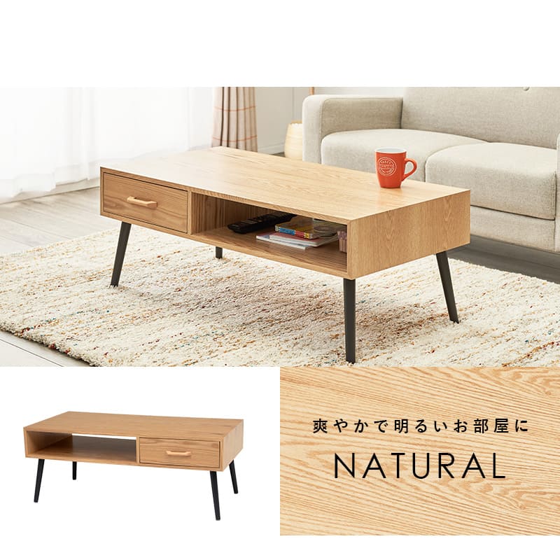 センターテーブル 100×45 天然木 テーブル リビング おしゃれ コンパクト 収納 ホワイト ナチュラル ブラウン モダン 引出し カフェ モダンなデザインの引出し付きローテーブル天然木の風合いを感じられるモダンなデザインの引出し付きローテーブル。幅100cm"}