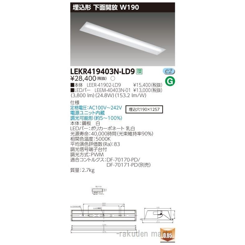 ◆メーカー:東芝ライテック◆品番:LEKR419403N-LD9(LEKR419403NLD9)◆品名:TENQOO埋込40形W190調光"}