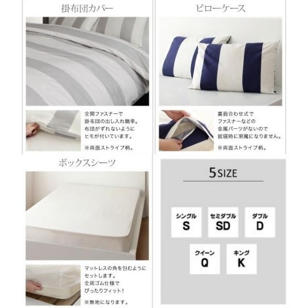 ベッド用 布団カバー ダブル 4点セット 枕カバー 掛布団 カバー ボックスシーツ 日本製 綿100% ボーダー デザイン 洗える 来客用 布団 シーツ 寝具 送料無料
