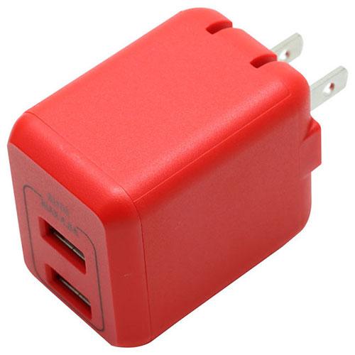 | ●カラー:レッド ●本体サイズ:(W)35×(H)45×(D)52mm ●コネクタ形状:USB-Aメス×2 ●入力:AC100V〜240V 50/60Hz ●出力:DC5.0V/4.8A(2ポート最大) 保証期間:6ヶ月 生産国:中国 |