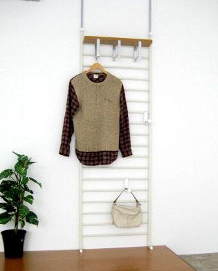 | 場所を取らないつっぱり壁面ハンガー!棚フックには、バックや小物・ハンガーに掛けた衣類を収納!小物フックにはお気に入りの帽子など!玄関につっぱって、お出掛け前の準備スペースに!! |