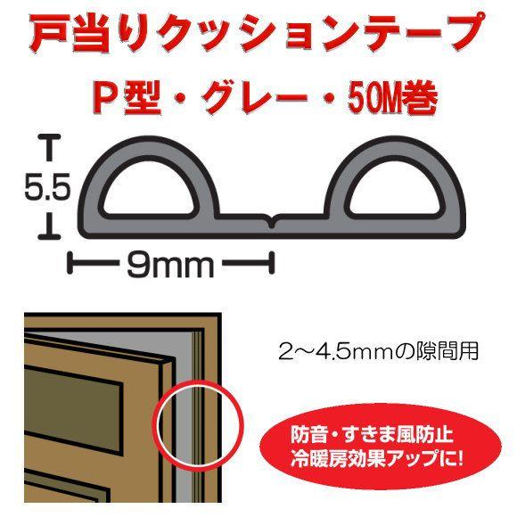 戸当りクッションゴム ドラム巻 KPG6-50W P型 グレー 5.5mmx9mmx50m 【光】