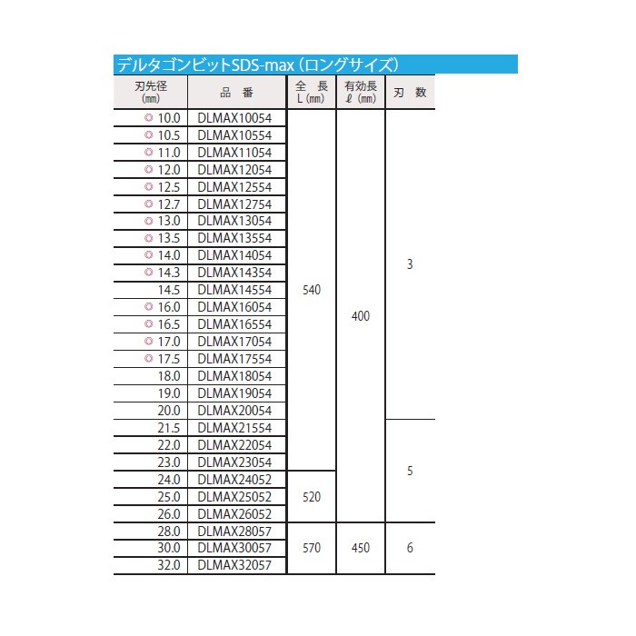【P】ミヤナガ デルタゴンビットSDS-max ロングサイズ DLMAX30057 刃先径30.0mm [MYN002834]