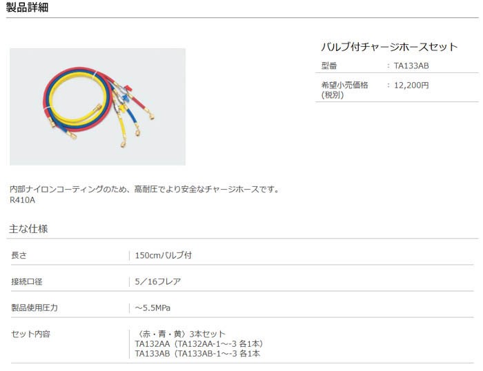 【P】【】【特殊送料商品】TASCOタスコ バルブ付チャージホース150cmセット TA133AB [TAS0309]