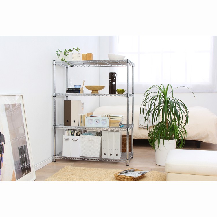 スチールラック メタルラック MR-9012Jリビング・キッチンなどいろいろな場所で使用できるインテリア製の高いクロームメッキ仕上げのラックです。棚板の高さは自由に変えられます。また、別売部品を使えば、自分だけのオリジナルラックが作れます。組み立てはネジやクギを使わずに簡単に組み立てられます。ポール直径25mm。●商品サイズ(cm):幅約91×奥行約46×高さ約120●耐荷重:棚板1枚あたり約250kg●主要材質:スチール+クロームメッキ仕上げ、ABS樹脂(検索用:オープンラック・スチールラック・テレビ台・TV台・キッチン・収納・棚・ラック・幅91cm・4段・業務用・おしゃれメタルシェルフスチールシェルフ・スチール棚・リビング収納・隙間収納・すき間収納・キッチンラック・キッチン収納)「メタルラック」はアイリスオーヤマ株式会社の登録商標または商標です。