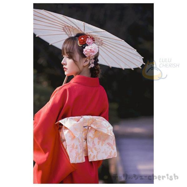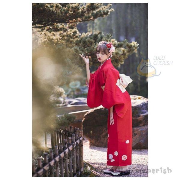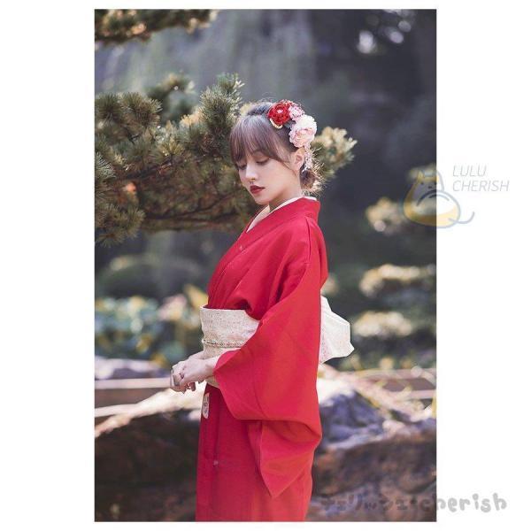 単品 ゆかた 浴衣 女性 レディース レッド 赤 洗える 街着 お出かけ ショッピング 文化祭 夏 可愛い 花見 花 花柄 婦人 レトロ きもの 古典 百合 牡丹 着れる