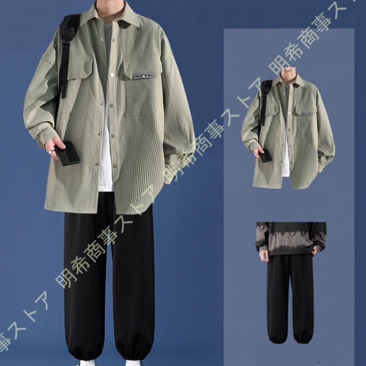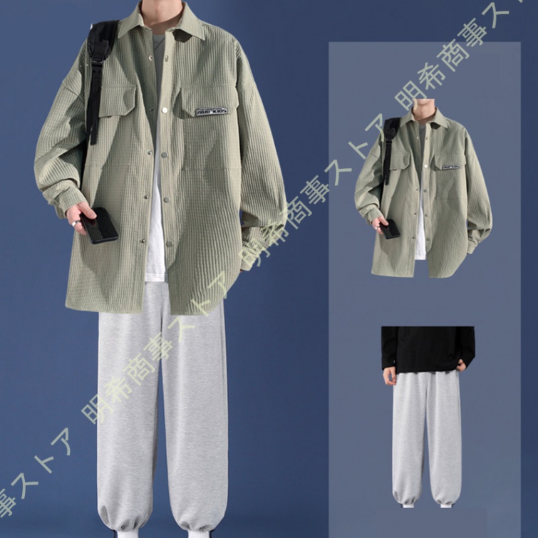 シャツ メンズ 夏 半袖 シャツ セットアップ サルエルパンツ 上下セット 上下セット 速乾 長袖 開襟シャツ ロングパンツ 2点セット 無地 ブラウス おしゃれ