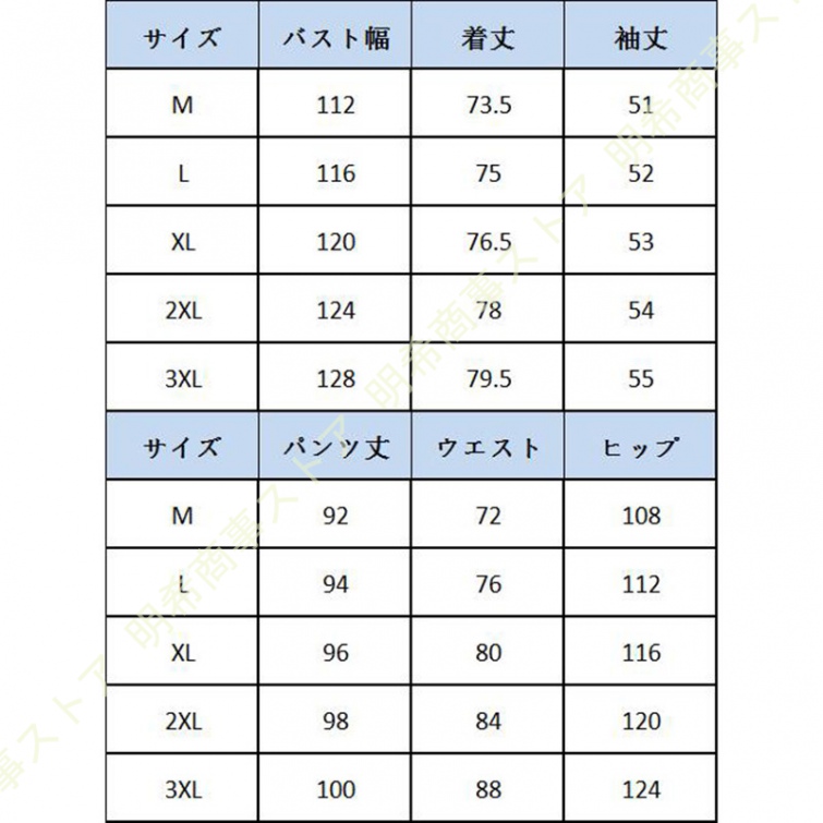 【商品仕様】材質: ポリエステル対象:メンズ長袖Tシャツ、ロングパンツの2点セット。【選ばれる理由】定番の着心地抜群長袖Tシャツ&ロングパンツの上下セットアップです。上質な生地で、運動する際、体の負担にならず、スポーツのテンションも上がってくれます。肌触りもよく、汗をかいても 快適な着心地とゆったりな着用感で毎日手に取りたくなるセットアップです。ロングパンツはゴム&紐が入っており伸縮性のあるウエストを採用して、機能性もアップ!上下別にもお使いいただける便利なセットです、別々で着てもOK。【サイズ】【M】パンツ丈92cm ウエスト72cm バスト112cm 着丈73.5cm【L】パンツ丈94cm ウエスト76cm バスト116cm 着丈75cm【XL】パンツ丈96cm ウエスト80cm バスト120cm 着丈76.5cm【2XL】パンツ丈98cm ウエスト84cm バスト124cm 着丈78cm【3XL】パンツ丈100cm ウエスト88cm バスト128cm 着丈79.5cm【注意事項】※量産における裁断方法の関係上、より1-3cmの差がある場合がございます。※お客様のモニター環境により実物の色合いと若干お色目が異なる場合がございます。"}