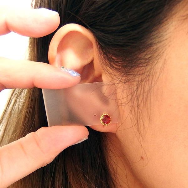 ピアス ガーネット K18 イエローゴールド シンプル シリコン製ダブルロックキャッチ仕様