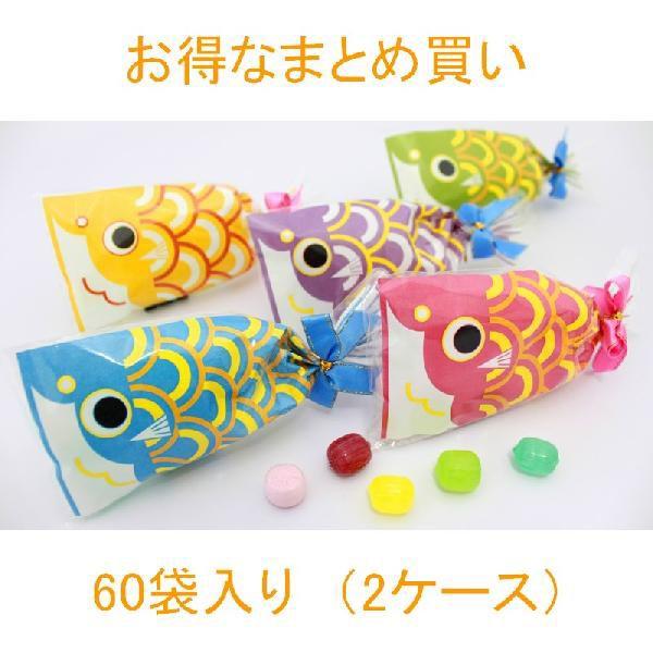 まとめ買いでお得!ポップでカラフルな鯉のぼりキャンディーは、青(サイダー)・赤(苺ミルク)・黄(レモン)・緑(メロン)・紫(ブルーベリー)の5種類!お子様に人気のフルーツ系の味です!手のひらサイズの大きさですのでちょっとしたプレゼントに最適!!リボン付で華やかに仕上げました。結婚式・二次会のプチギフトにぜひご利用下さい☆※5種類アソートでのお届けとなります。"} プチ京鯉のぼり 60袋入り(2ケース)