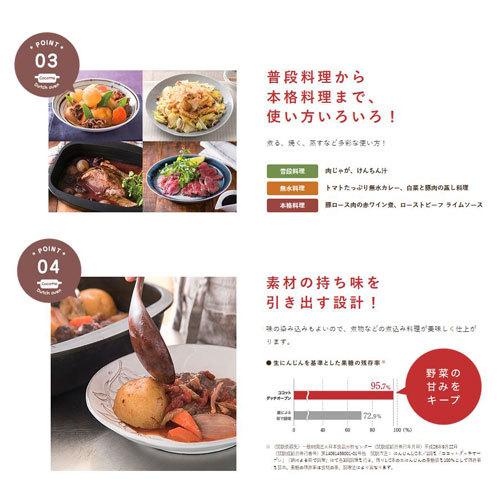 中までじっくり火を通し、素材の旨みをギュッと凝縮。食卓にもそのまま運べます。