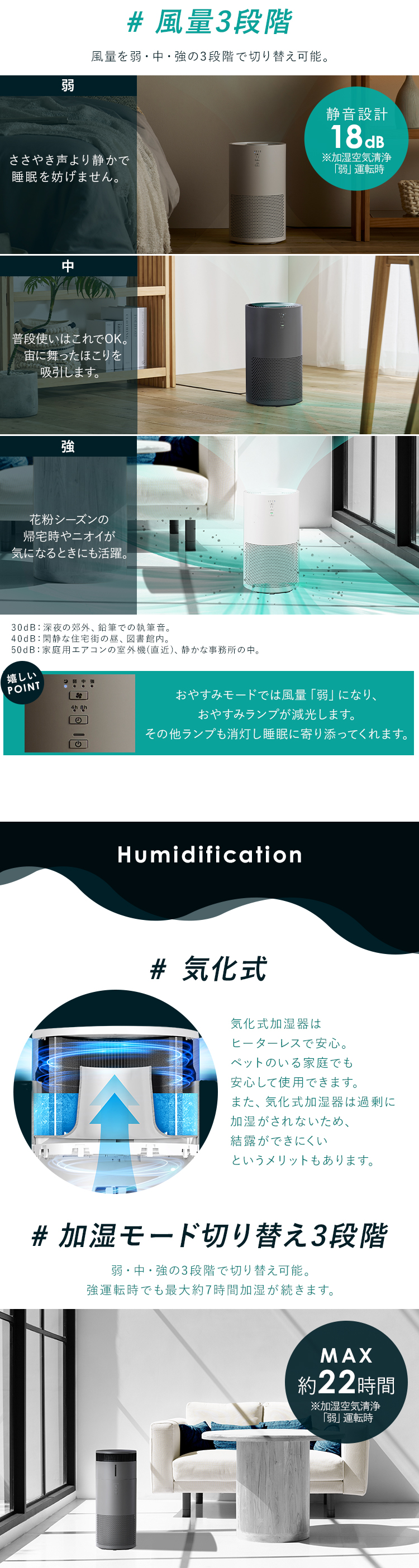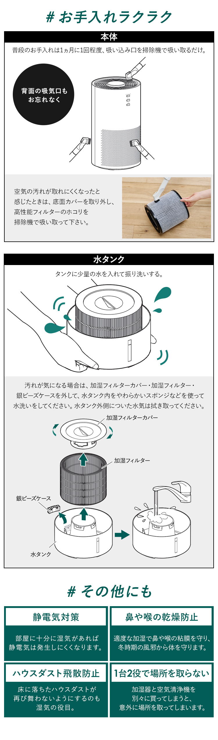 気化式加湿器と空気清浄機の1台2役。