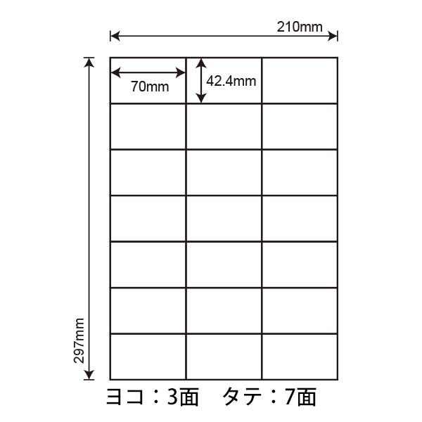 ■ワールドプライスラベル マルチタイプラベル(普通紙タイプラベル) ・ナナワード LDZ21QB 同型 ・ナナコピー C21Q 同型 ・ナナクリエイト CL-49 同型シートサイズ:A4(210×297mm)ラベルサイズ:70.0mm×42.4mm面付け:21面付シート枚数:1,500シート(3ケース)ラベル個数:31,500片(1,500シート×21面)※ケース数:3ケース(【1ケース=100シート×5袋】×3)対応プリンタ:レーザープリンタ・インクジェットプリンタ・コピー機・熱転写プリンタ(顔料系インクを使用している機種は対応しておりません)無償サンプル対象外、代替品等対応となります。東洋印刷 余白なし A4判 21分割 42.4×70mm ナナラベル nana ラベル紙 ラベル用紙 42.4mm×70mm OAラベル バーコード ラベル 値札 シール 印刷ラベル 表示シール 荷札ラベル 表示ラベル 荷札用ラベル 管理ラベル 管理シール 商品ラベル■特徴・使用上のご注意■
