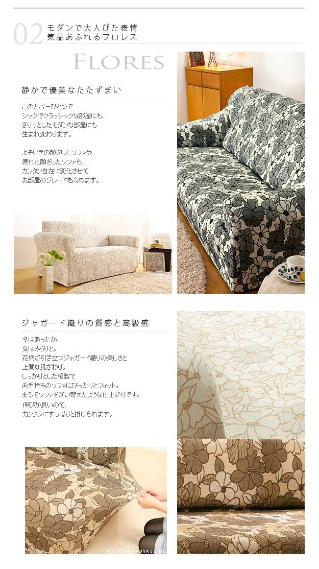 スペイン製 ストレッチフィット ソファカバー FLORES〔フロレス〕アームなし 2人掛け用 ソファーカバー ストレッチ 2人掛け