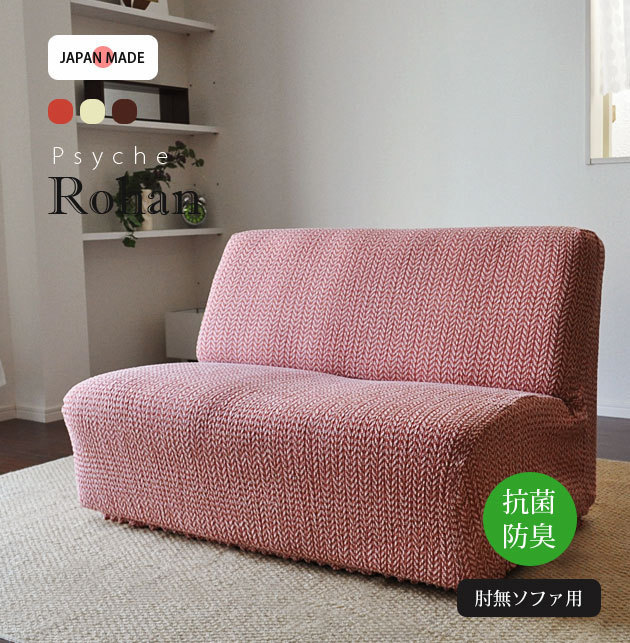 素材、フィット感、機能性、クオリティすべてにこだわった高品質の日本製ソファーカバーブランド【Psycheプシュケ】に【Rohanロハン】が登場★天然素材を使用した気持ちいい肌触りと高い伸縮性が特徴で、ソファにぴったりフィットしてまるで新品のソファのように。優れた性能を保障するSEKマークを取得した抗菌防臭加工を施し、家庭の洗濯機であらえるので、お手入れがとても簡単です。生地の編みから加工、縫製、仕上げにいたるまですべて日本国内で生産している唯一の純日本製高品質ソファーカバーです。肘付きタイプ、肘なしタイプのそれぞれ3サイズからお選びいただけます。【お知らせ】お届けに1週間前後いただきます。【サイズ】肘掛無し2人掛けソファー用(対応ソファ:幅100〜140cm/高さ〜90cm/奥行〜90cm) 【カラー】 3色展開【素材】 ポリエステル56%/綿38%/ポリウレタン4%/リネン2%【機能】 抗菌防臭加工・ウォッシャブル【取り扱い方法】 洗濯絵表示に従って洗濯してください。写真の色調はモニターの機種や設定により実際の商品と異なる場合があります。記載事項は商品改良のため予告なく変更することがあります。何卒ご了承ください。"}