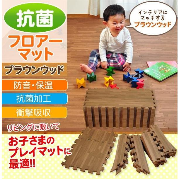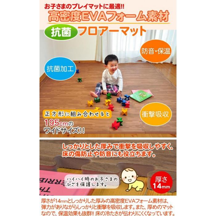 リトルプリンセス 抗菌加工 フロアーマット(ジョイントマット) 195cm×195cm(約2畳分) 木目調ブラウンウッド