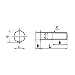 ※bの長さにつきまして、規格上は(b=dx2+6、L=130からb=dx2+12、L=220からb=dx2+25)となりますがサイズ、メーカー、ロットにより異なる場合がございます。ネジ部の長さが重要な場合は事前にお問い合わせください。