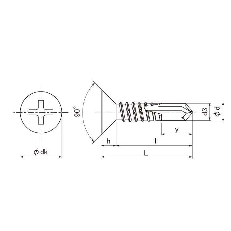 独自で下穴を開け、タップを立て、締め付けるまでをこなすことができます。施工時に下穴をあける必要がありません。タッピングネジの進化版です。ねじ先のドリル部分がとがっており、ねじ部はタッピングネジやタッピングビスと同じような形状になっています。"}