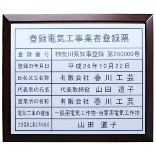 登録電気工事業者登録票 セピア額入り・板面はホワイト/登録電気工事業者登録票 お洒落な 登録電気工事業者登録票 額入 登録電気工事業者登録票