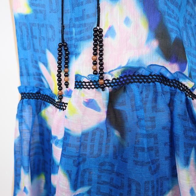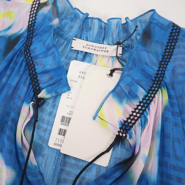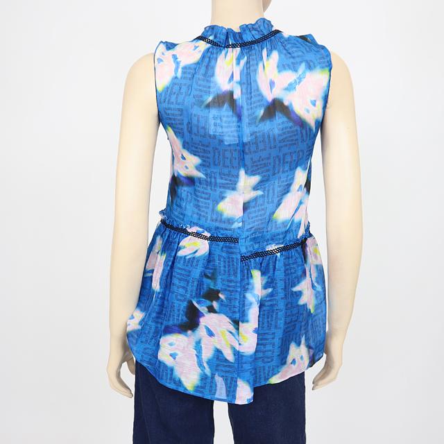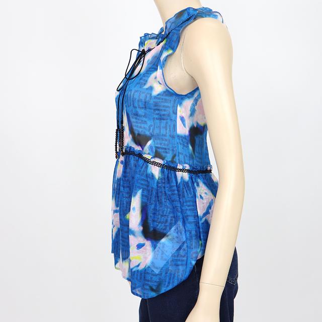 ドロシー・シューマッハ(DOROTHEE SCHUMACHER)レディース ノースリーブブラウス ネイビー系 麻・シルク混紡 ぼかし柄 (サイズ/0/1/2/3)*se0039