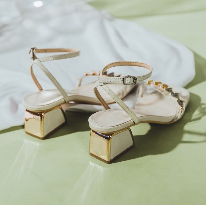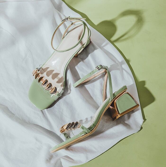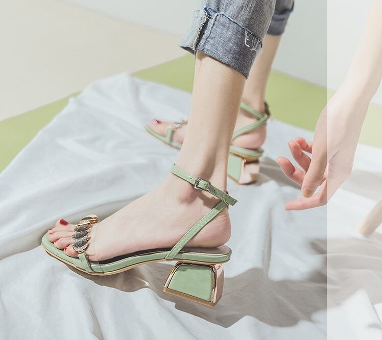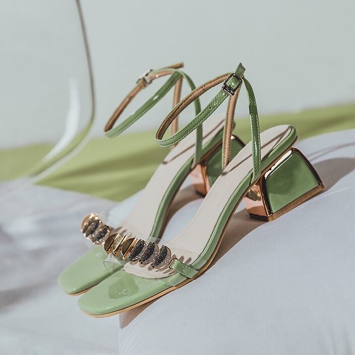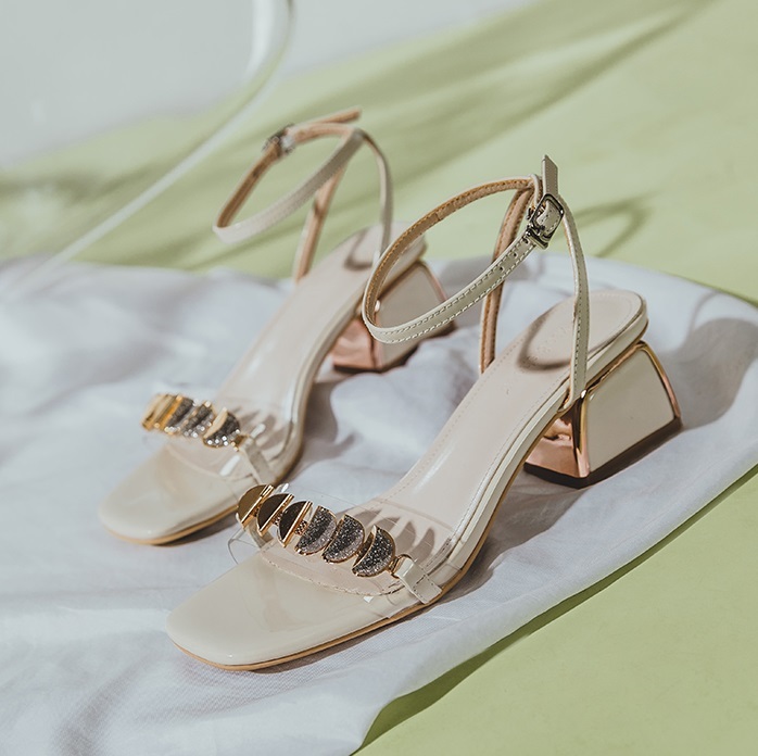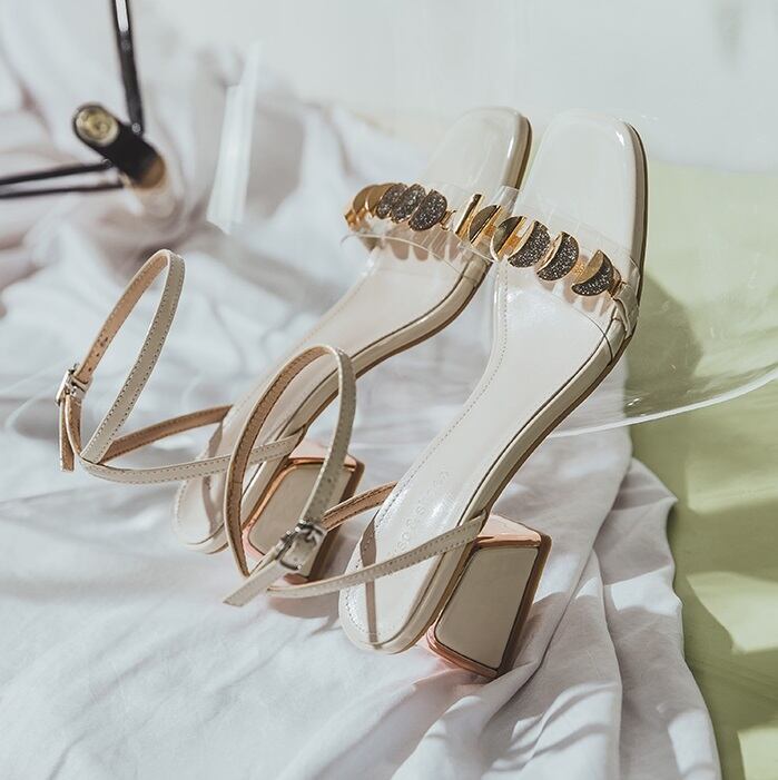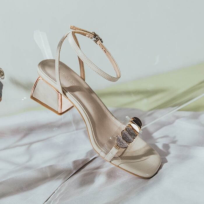 40代 50代華やかさと履き心地を兼ね備えた大人可愛いサンダル』レザーを使用したクリアな装飾が印象的なサンダル。チャンキーヒールとスクエアトゥのデザインで、オープントゥで取り入れた4.5cmのミドルヒールで歩きやすく、履きやすいデザイン。大人可