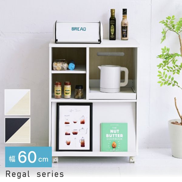 キッチンカウンター 間仕切り キッチン収納 カウンターレンジ台 ロータイプ キッチンラック 幅60cm スライド棚 付き フラップ扉 ホワイト ブラック