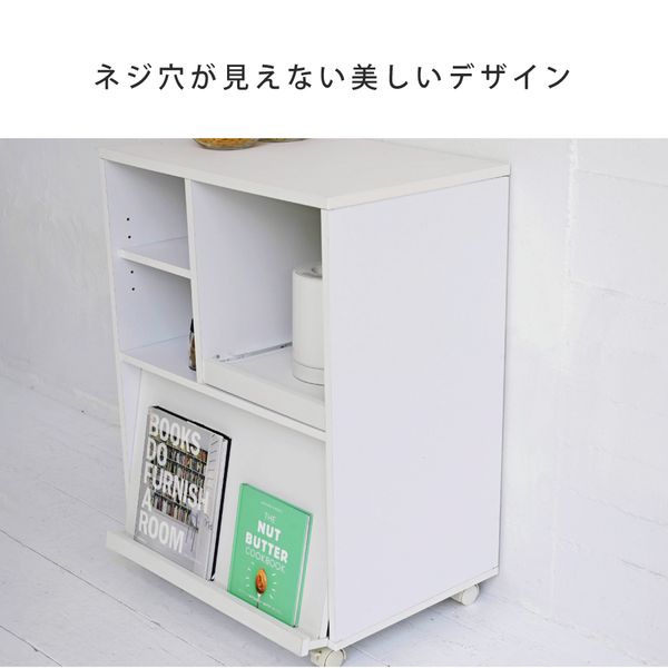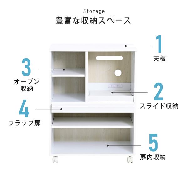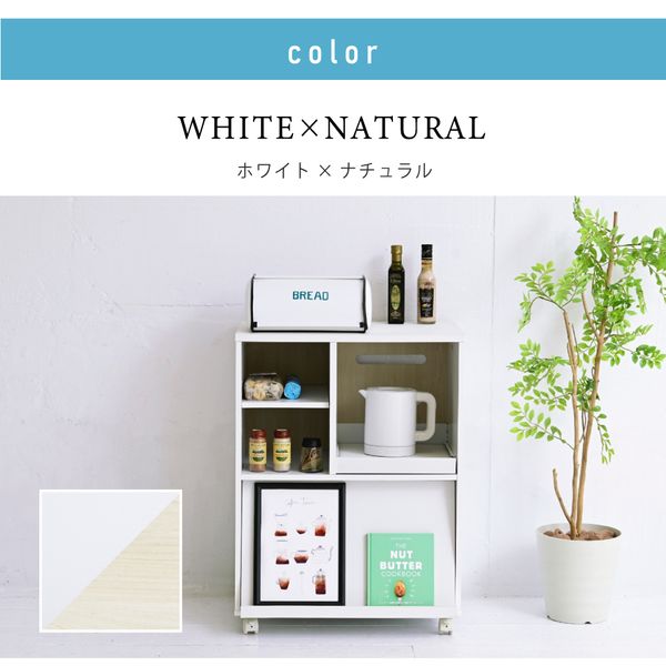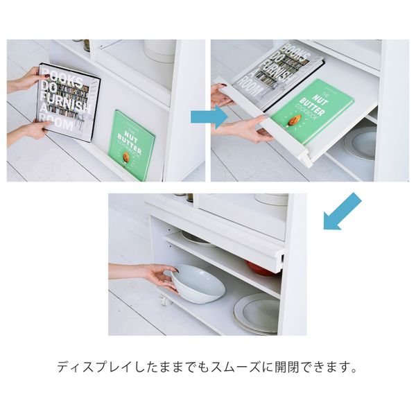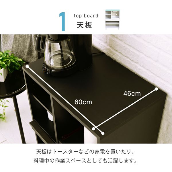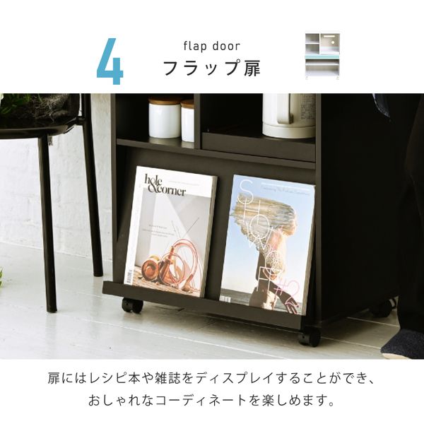 キッチンカウンター 間仕切り キッチン収納 カウンターレンジ台 ロータイプ キッチンラック 幅60cm スライド棚 付き フラップ扉 ホワイト ブラック[18]