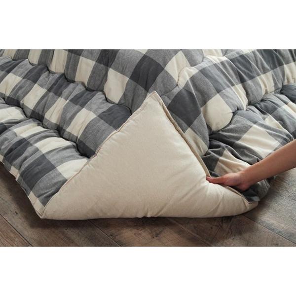 インド綿 こたつ布団/寝具 〔大 チェック柄 ローズ 約205×285cm〕 長方形 綿100% 通気性 耐久性 軽量 東レ 〔リビング〕〔〕