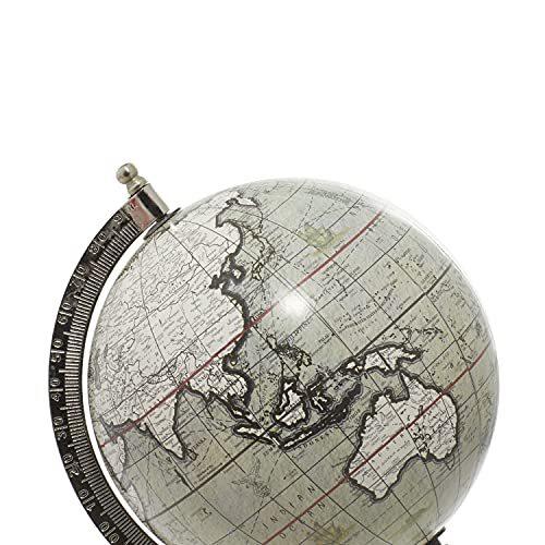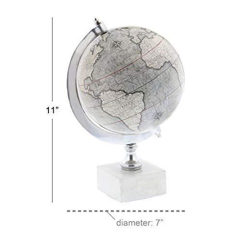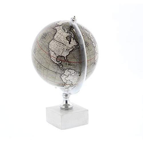 Deco 79 28545 アイアンワールド装飾グローブ 大理石ベース 11インチ x 7インチ ホワイト 並行輸入
