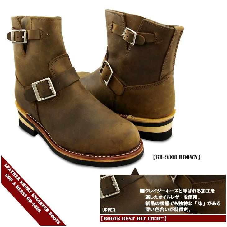 GB-9808 黒 茶色 23-28.5cm 29・30cm(G&B)のオール本革ショートエンジニアブーツです。レットウィングタイプオールレザー、スチール入りトゥ、グッドイヤーウェルト製法のアイテムです。 ニューカラー(ブラウン)が登場(クレイジーホース)と呼ばれる、独特の加工が雰囲気抜群です。サイズ(CM):23-28.5cm 29・30cmヒール高:約5cmカラー:ブラック・ブラウン素材:本革 靴底:合成底
