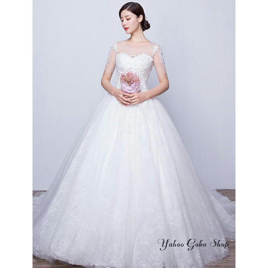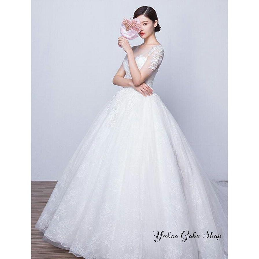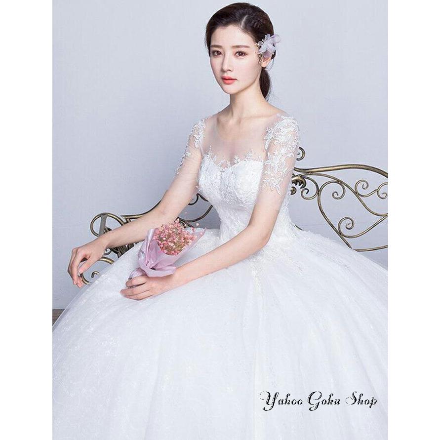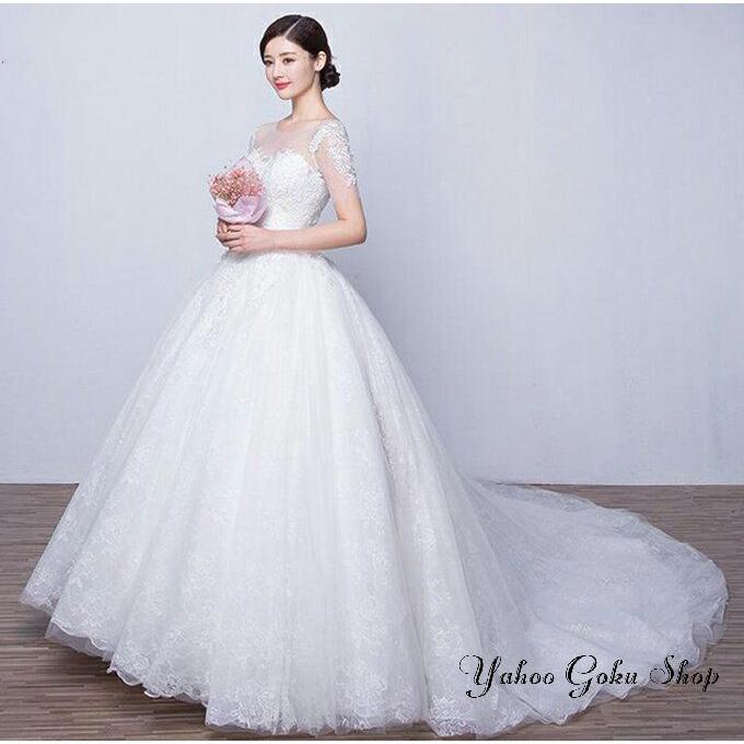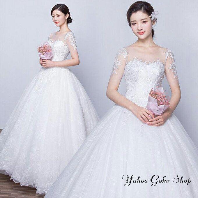 ウェディングドレス 袖あり【オーダーメイドも可能】ウエディングドレス Aライン 編み上げタイプ 前撮り