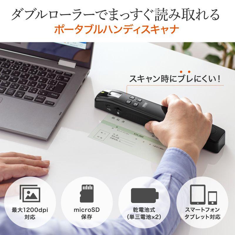 訳あり新品 ポータブルハンディスキャナ 1200dpi対応 microSD保存 電池式 PSC-HS2BK サンワサプライ 外装に傷・汚れあり