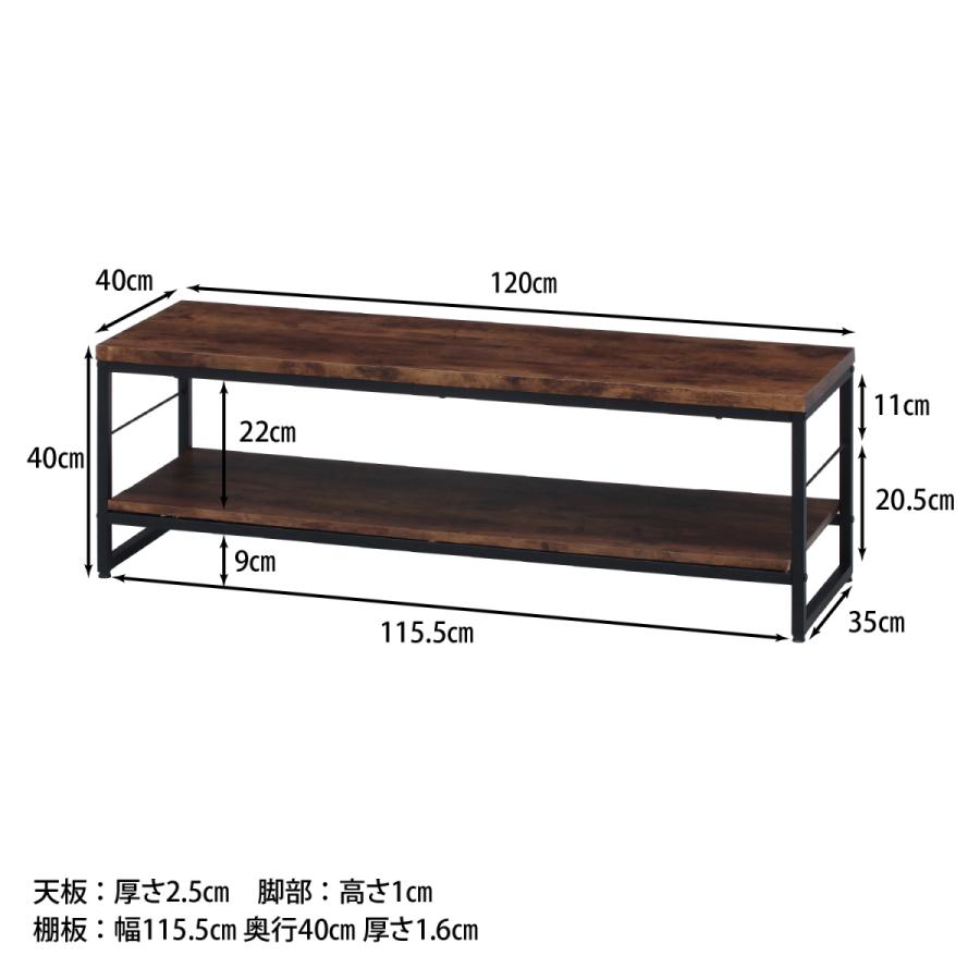 カラー ブラウン/ブラック商品サイズ(mm) 全体:幅1200 × 奥行400 × 高さ400耐荷重(天板):40kg商品重量(kg) 16.5梱包サイズ(mm) 外箱:幅1240 × 奥行445 × 高さ107梱包込み重量(kg) 17.8素材 塗装:エポキシ樹脂塗装<br>材質:■表面材:合成樹脂化粧パーティクルボード ■構造部材:金属(鋼) ■表面加工:エポキシ樹脂塗装注意事項 ※商品画像の小物等は商品に含まれておりません。※画面上のカラーはブラウザや設定により、実物とは若干異なる場合がございます。あらかじめご了承の上ご注文ください。