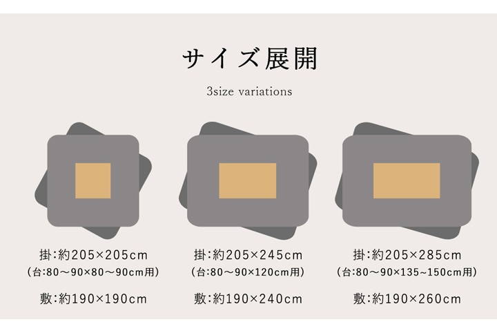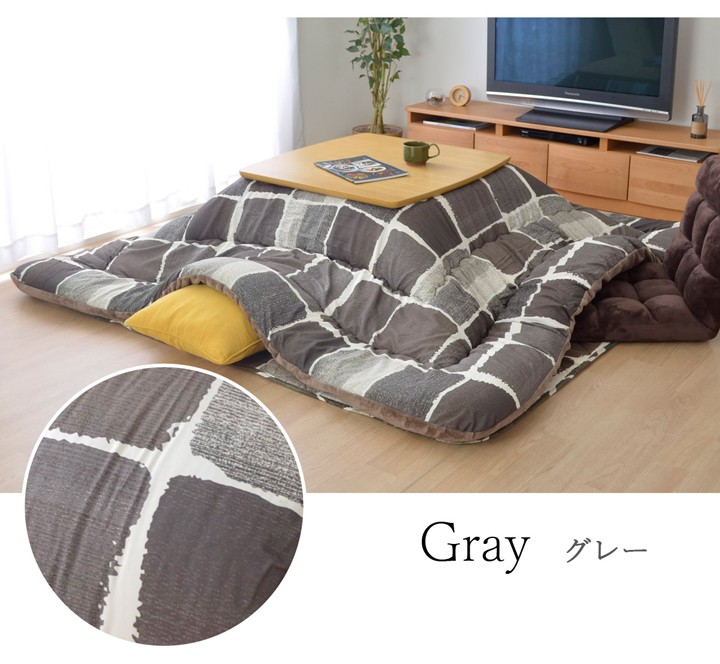 こたつ布団 正方形 おしゃれ 掛け敷きセット グレー 約205×245cm