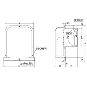 西邦工業【GXUD200SC】薄型内ガラリ・左右下部開放・防火ダンパー付外壁用ステンレス製換気口・深型フード・ワイド水切り付〔HF〕